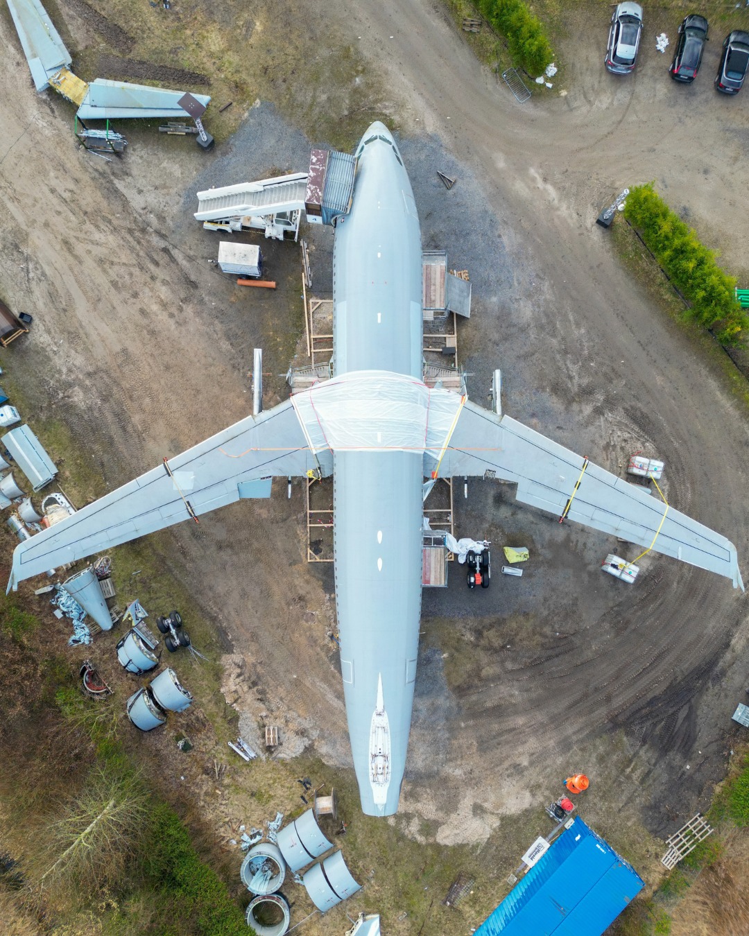 Die letzte Landung: Am 30. Oktober erfolgt das Umheben des Rumpfes von den Transportgestellen auf seinen finalen Stellplatz. Dort werden dann Nase, Tragflächen, Leitwerke, Fahrwerke, Triebwerke etc wieder angebaut und der Umbau in „Leo’s Cockpit Restaurant“ beginnt. Geplante Eröffnung: Spätsommer 2026.