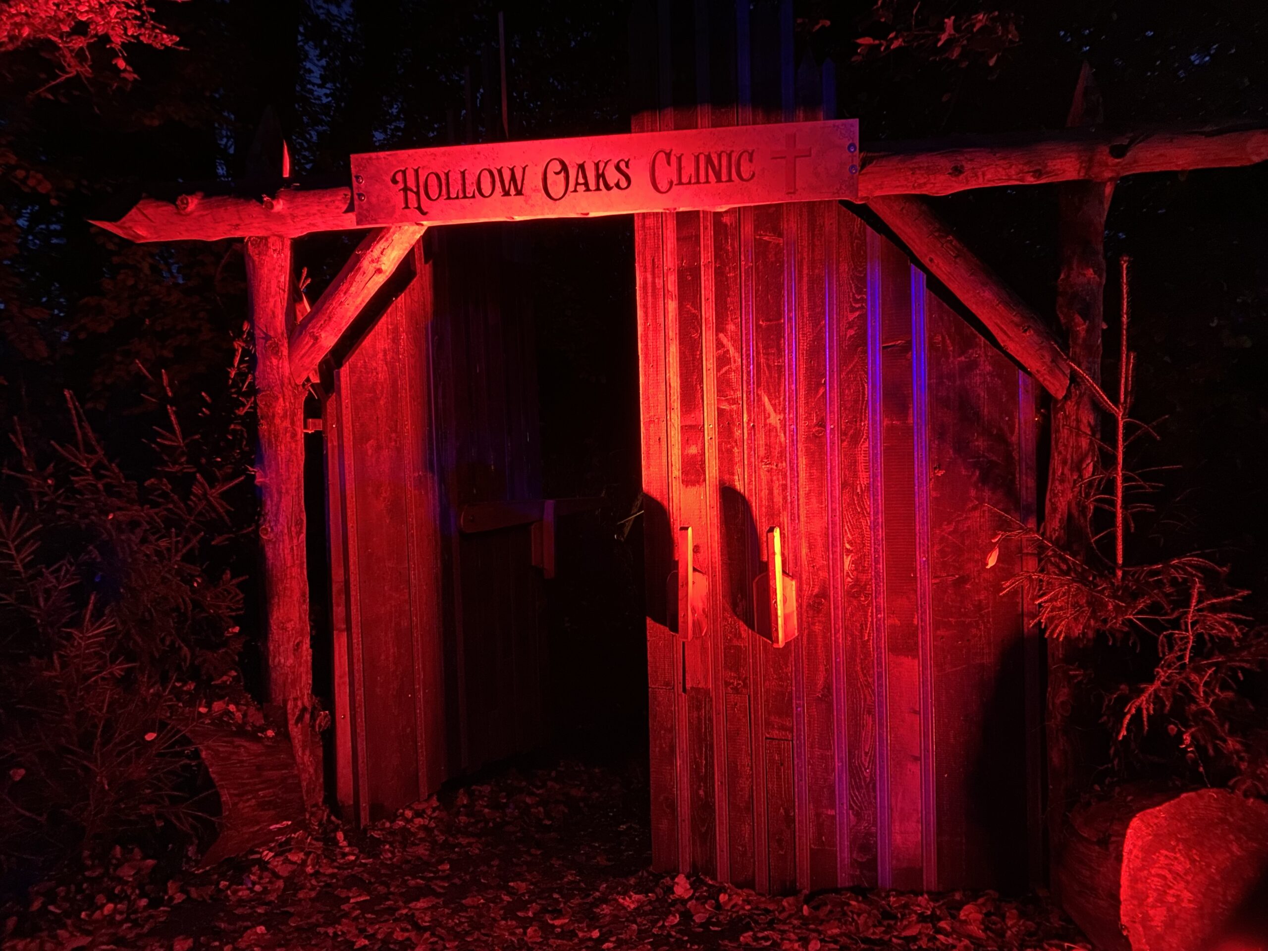 Die ebenfalls schon bekannte Maze „Hollow Oaks Clinic“ (empfohlen ab 16 Jahren) kombiniert Indoor- und Outdoor-Elemente. Nachdem Gäste sich durch einen verlassenen Wald geschlagen haben, landen sie in einer Klinik, in der Härtefälle behandelt werden, die Therapieschäden aus den Laboren der „S.O.M.N.“ davongetragen haben. Während der Outdoor-Part im Wald eher schwach bespielt ist, trifft man im Inneren der Klinik auf zahlreiche Ärzte, Therapeuten und Patienten, die auf verschiedenen authentisch gestalteten Stationen mit den Gästen interagieren und so für eine spannende und stimmige Maze-Erfahrung sorgen. Der Gruselfaktor ist dafür allerdings eher gering.