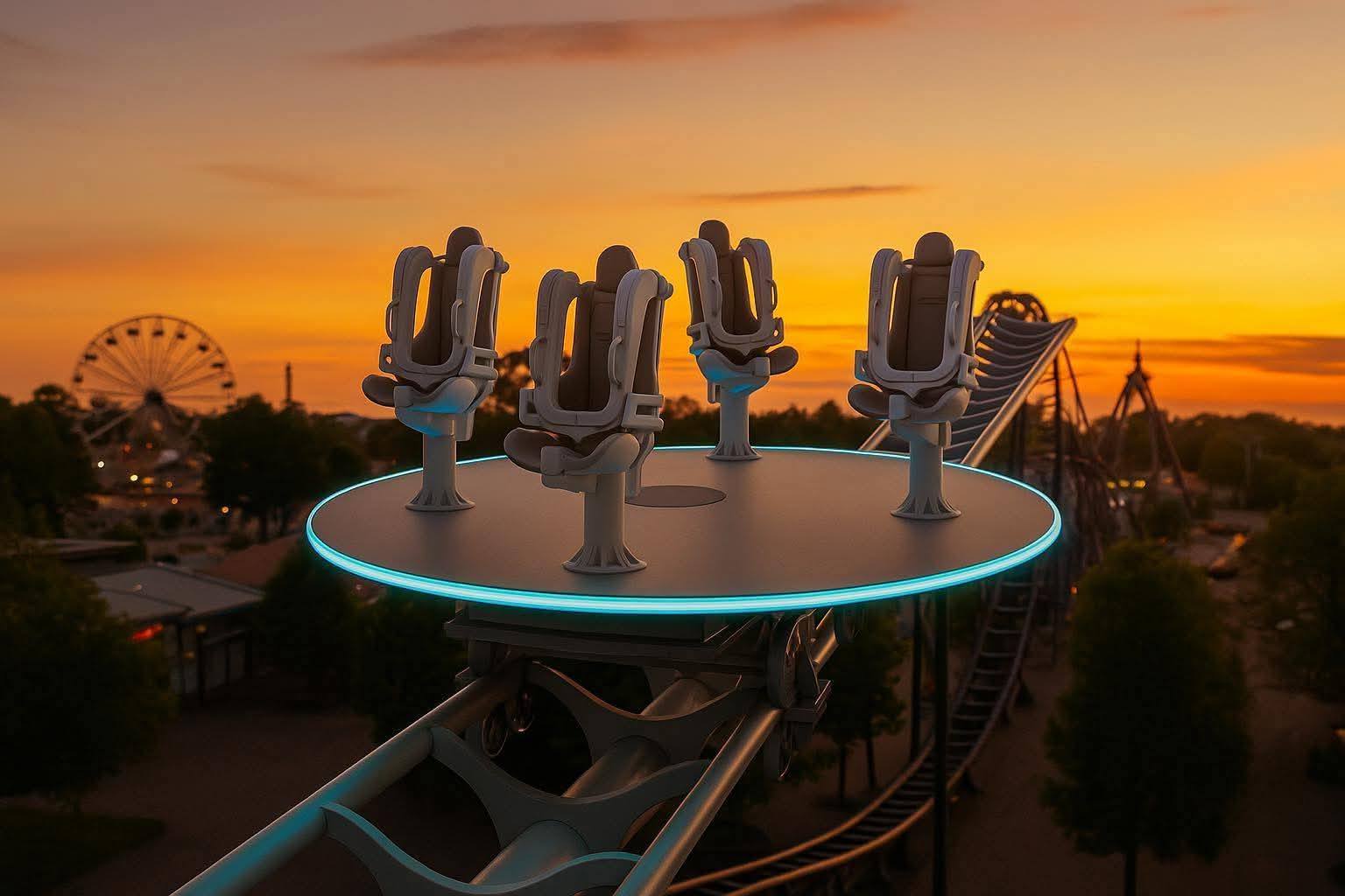 Ein neues Modell von Marc Rides mit dem Power-Pivot-Achterbahn vorgestellt, diese besteht aus vier einzelnen, drehbaren Sitzen, die auf einer Drehscheibe montiert sind und kann optional auch mit einem Antriebsmotor ausgestattet werden.