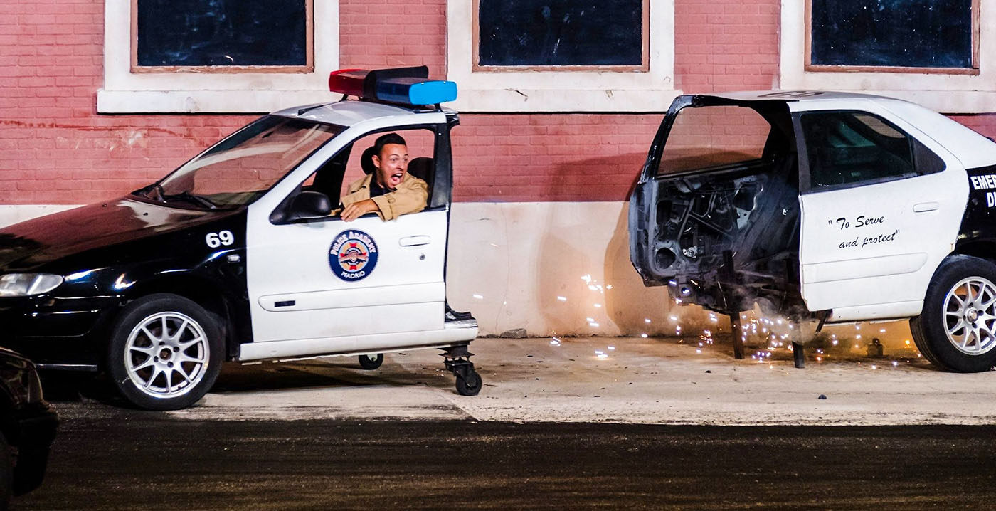 Die Zuschauer verfolgen die komischen Abenteuer einiger Polizisten, kombiniert mit Stunts, die von Hollywood-Verfolgungsjagden inspiriert sind. Das Spektakel findet im Teatro de Especialistas mit 2650 Plätzen in der Themenzone Movie World Studios statt. Am Montag, dem 5. Januar, ist die letzte Show.