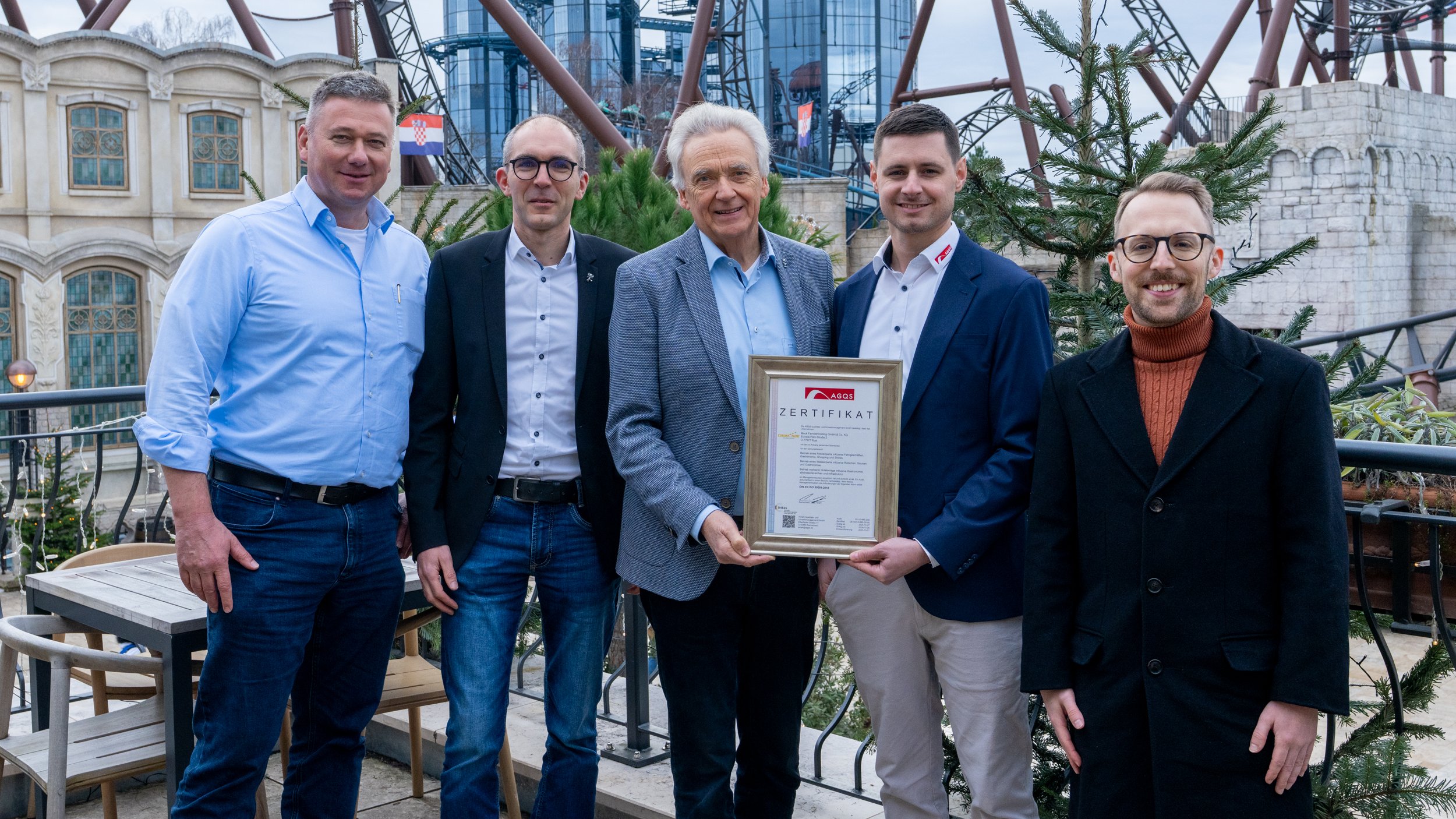 Ein bedeutender Schritt auf unserem Weg zu mehr Energieeffizienz und nachhaltigem Wirtschaften ist getan: Das Energiemanagementsystem des Europa-Park Erlebnis-Resort wurde im vergangenen Jahr erfolgreich nach der Norm DIN ISO 50001 zertifiziert und bekam nun das Zertifikat von Manuel Fomby, Geschäftsführer AGQS Qualitäts- und Umweltmanagement GmbH, überreicht.