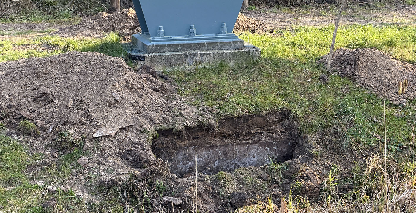 Ein Betonfundament des Stützpfeilers der Achterbahn wurde ausgehoben. Es handelt sich um einen Fundamentblock am Ende der Bahn, zwischen der Helix und der Kurve vor den Bremsen. Möglicherweise ist eine Inspektion erforderlich oder es müssen Anpassungen vorgenommen werden.