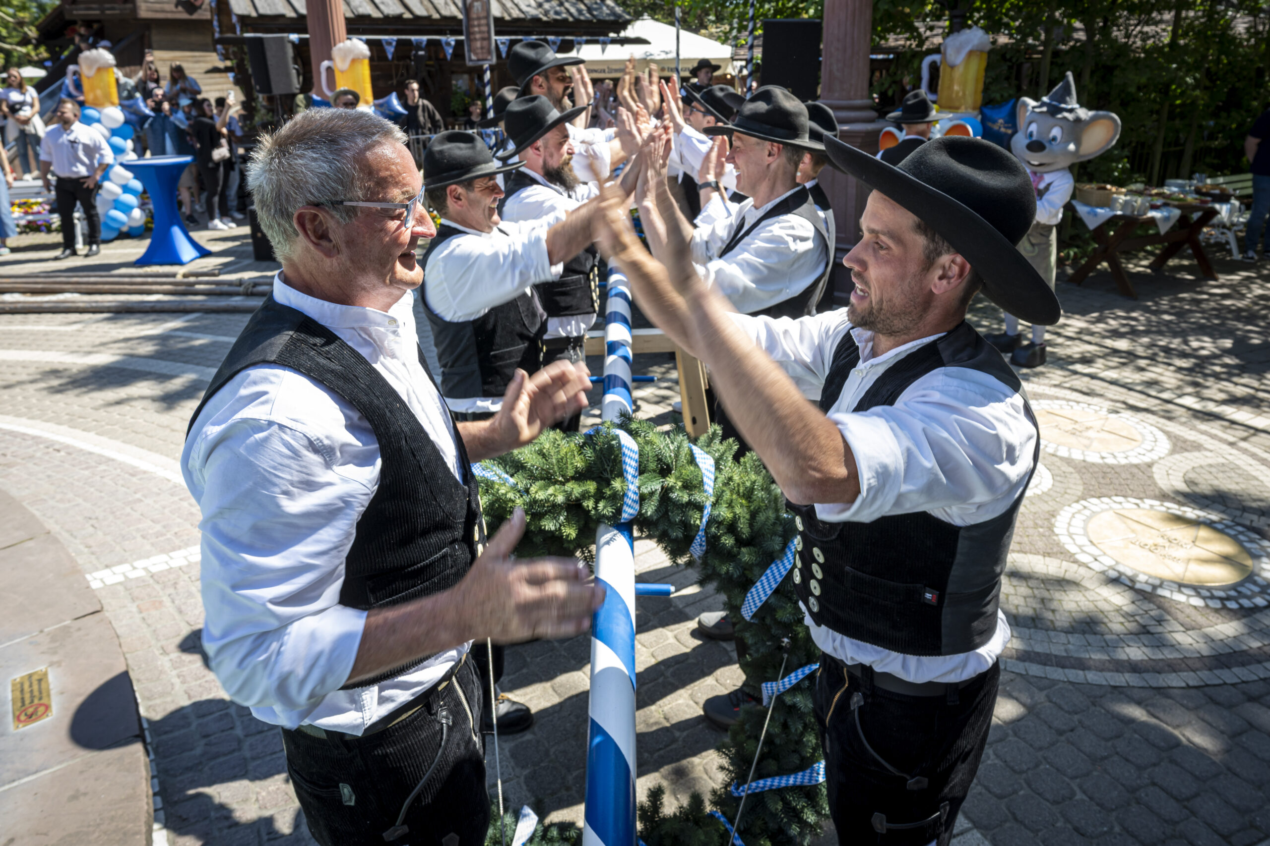 Am 1. Mai geht es im Europa-Park wieder zünftig zu: Mit dem Aufstellen des Maibaums wird offiziell die Biergartensaison eingeläutet und ausgiebig gefeiert.