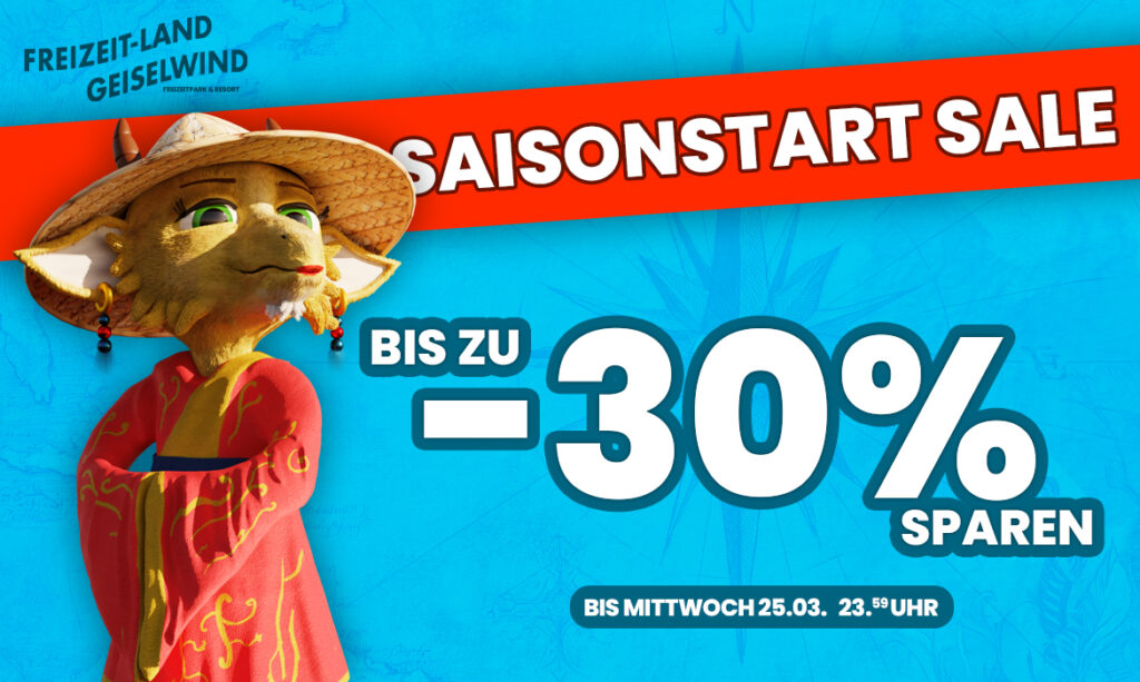 Hallo Abenteurer, endlich ist es soweit: Am 28.03. startet das Freizeit-Land Geiselwind in die neue Saison! Freut euch auf einen Tag voller Action, Spaß und unvergesslicher Momente mit eurer Familie. Neue Highlights, bekannte Lieblingsattraktionen und jede Menge Abenteuer warten auf euch! Zum Saisonstart haben wir ein besonderes Angebot für euch:Sichert euch jetzt 20 % Rabatt auf […]
