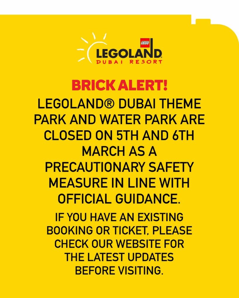 Am 05. und 06. März 2026 blieben alle Freizeitparks in Dubai aufgrund von Sicherheitsmaßnahmen und der angespannten Lage in der Golfregion geschlossen. Weitere Schließtage könnten folgen.Bildquelle: Legoland Dubai Resort + Dubai Parks