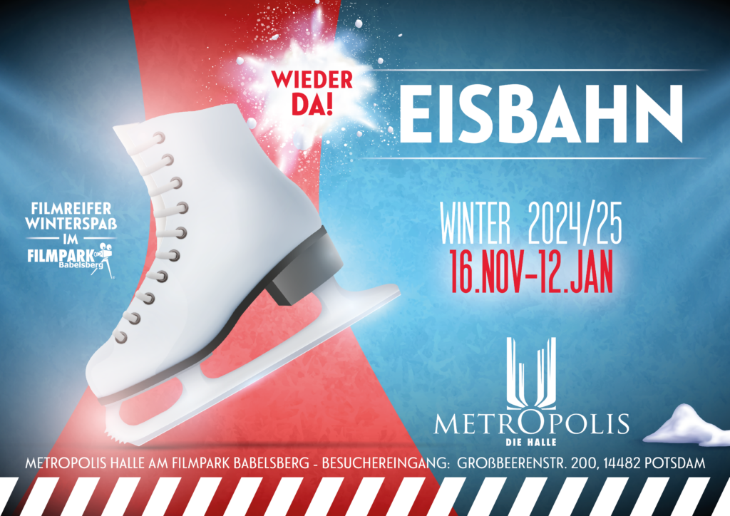 Potsdam hat endlich wieder eine Indoor-Eisbahn! Die glitzernde Eiswelt mit ca. 650 qm Fläche ist ab 16. November in der Metropolis Halle zu erleben. Kleine und große Schlittschuhfans sind hier bis zum 12. Januar 2025 zum Spaß auf Kufen herzlich willkommen.Werktags können Gruppen und Schulklassen bereits ab 10:00 Uhr nach Voranmeldung eislaufen. Ab 13:00 Uhr […]