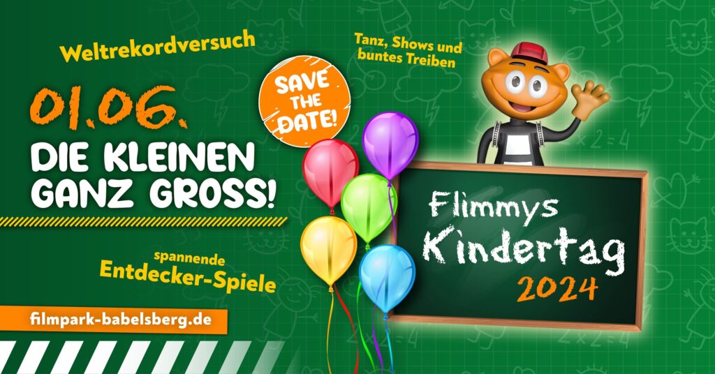 An Flimmys Kindertag am 1. Juni 2024 von 10:00 – 18:00 Uhr verwandelt sich der Filmpark in ein Abenteuerland. An zehn Stationen erwarten Flimmy und seine Partner mit thematisch passenden Spielen, Aktionen, Experimenten sowie Vorführungen und ermutigen zum Mitmachen. Sport, Naturwissenschaft und Kunst stehen in diesem Jahr im Mittelpunkt und sollen über den Kindertag hinaus […]