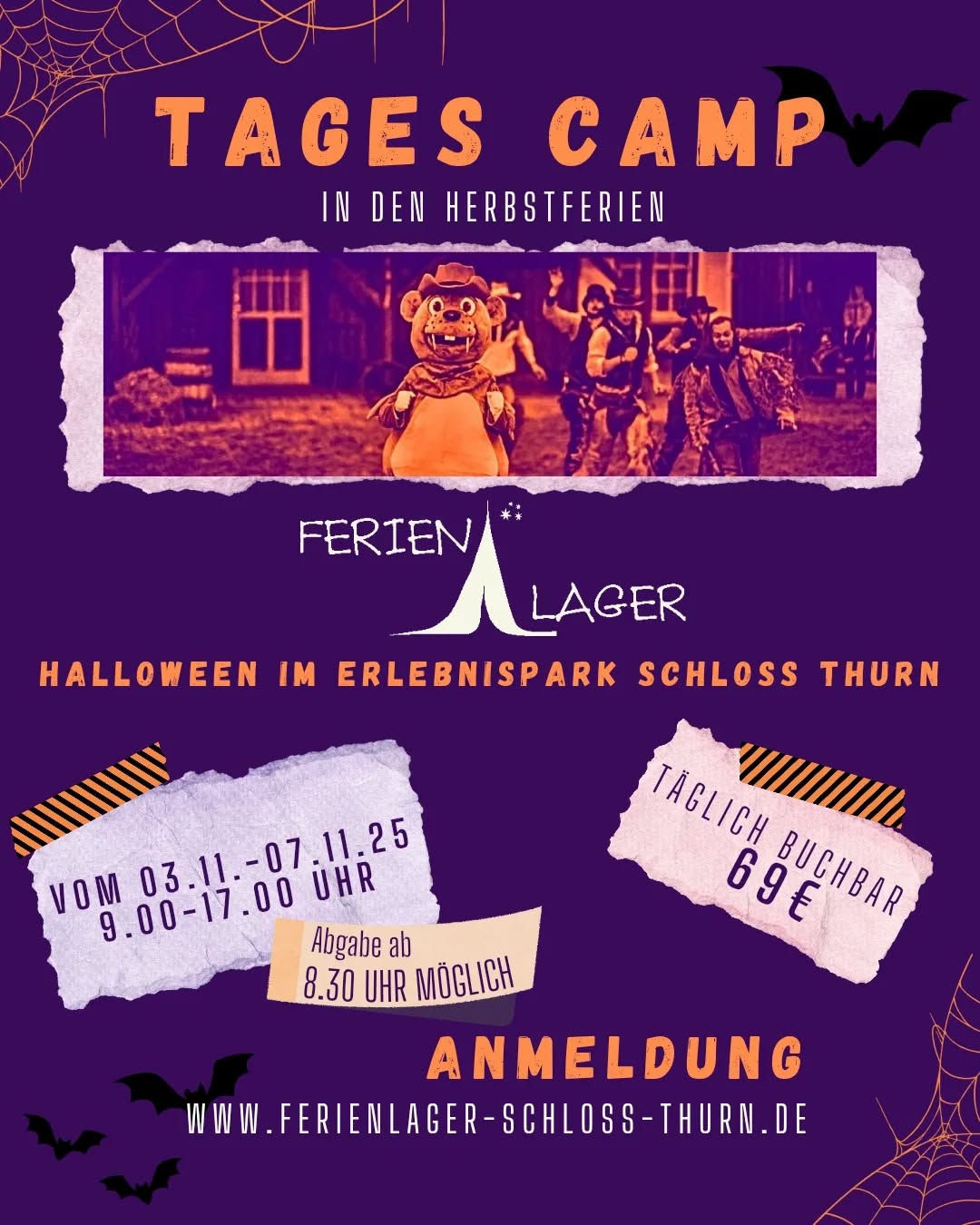 In den Herbstferien findet, im Erlebnispark Schloss Thurn, die Halloween Aktionswoche statt und bietet seinen Besuchern ein tolles Halloween Erlebnis. Das Ferienlager Schloss Thurn veranstaltet